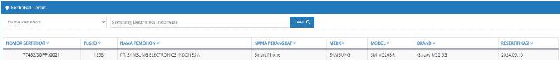 Kepastian bakal masuknya Galaxy M52 5G ke Indonesia diperkuat dengan sertifikat bernomor 77452/SDPPI/2021 yang dipublikasikan oleh situs Postel Ditjen SDPPI untuk perangkat Samsung SM-M526BR.