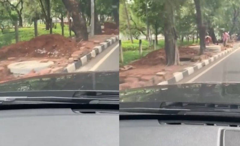 Seperti pada video yang baru-baru ini beredar di media sosial yang memperlihatkan seorang pengendara mobil mengkritik sumur resapan yang dibangun di atas trotoar.