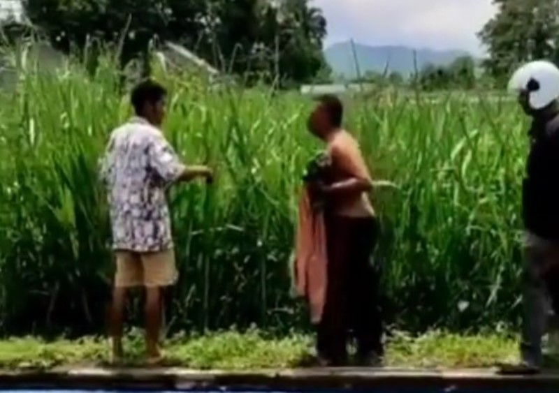 Pria itu yang tampak tidak mengenakan kaos itu pun naik ke pematang. Ia berjalan sambil nangis dan mengomel menyebut warga yang menangkapnya tidak mempunyai perasaan.