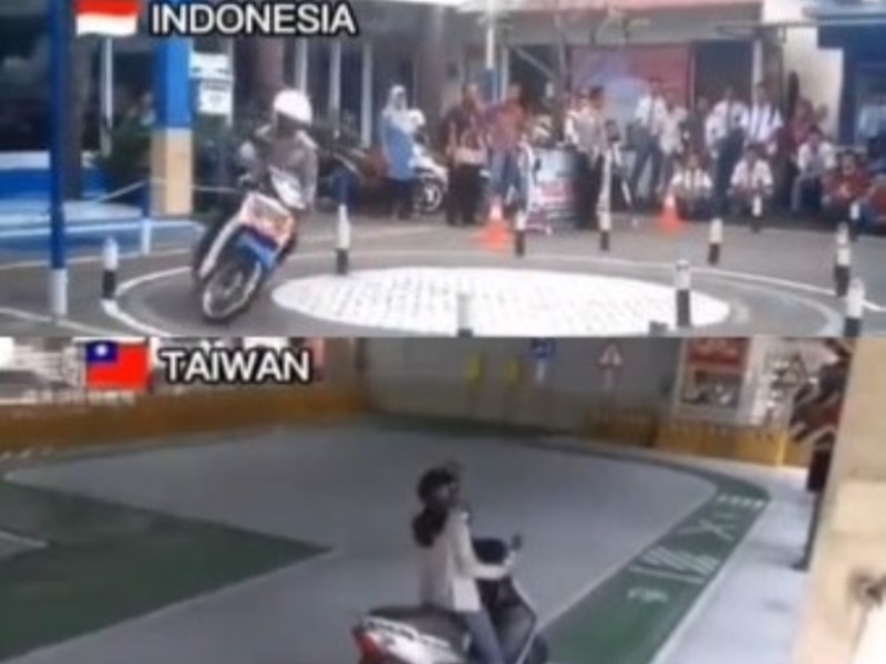 Tentu pemandangan di video bagian atas sangat berbeda dengan video bagian bawah yang memperlihatkan ujian praktik SIM C di Taiwan.