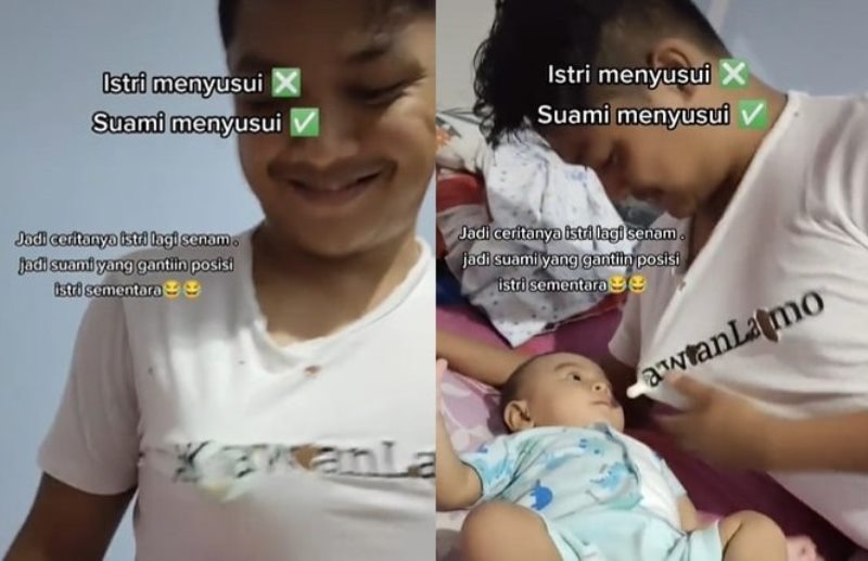Viral Video, RANCAH POST – Seorang suami membagikan video yang memperlihatlan trik jitu menyusui anak bayi ketika istri sedang tidak ada di rumah. Video tersebut dibagikan melalui akun TikTok @alung_nita0806 pada 9 Januari 2022 lalu.