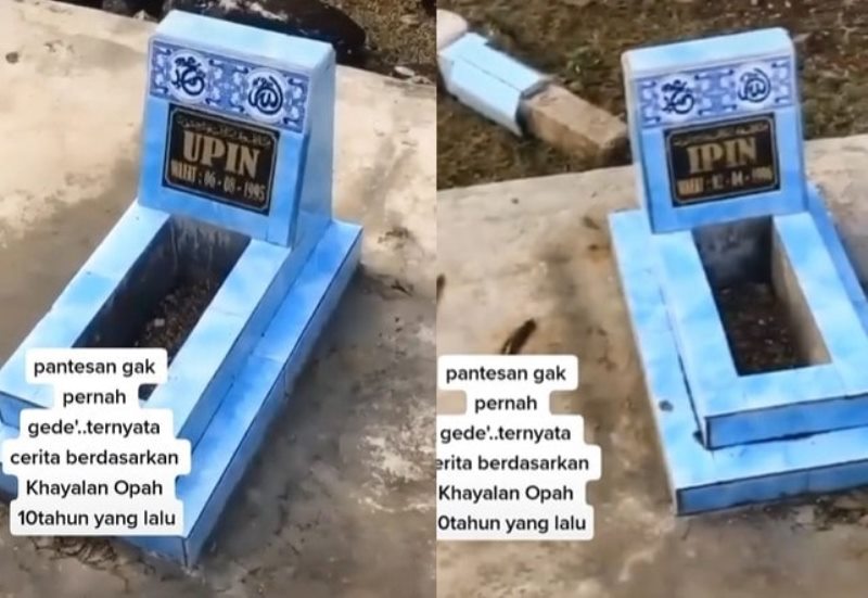 Sedangkan pada nisan kedua tertulis nama Ipin yang wafat pada 2 April 1996. Akun yang mengunggah video tersebut memberikan informasi dalam bentuk narasi mengaitkan dengan kartun Upin dan Ipin yang sedang fenomenal sekarang ini.