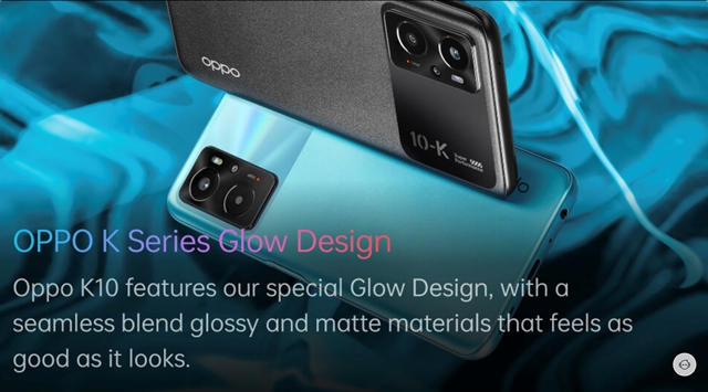 Sayangnya, spesifikasi Oppo K10 masih belum ditampilkan. Situs Oppo India hanya mengungkap bahwa bodi ponsel ini akan mengusung teknologi Glow Design dengan perpaduan bahan glossy dan matte.