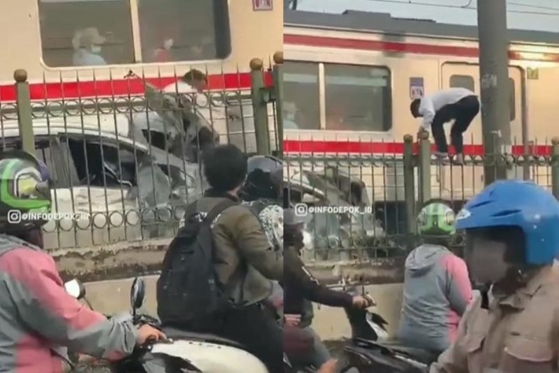 Viral Video, RANCAH POST – Viral sebuah video yang memperlihatkan detik-detik pasca insiden mobil Honda Mobilio tertabrak kereta rel listrik (KRL) di perlintasan Rawageni, Kota Depok pada Rabu, 20 April 2022 pagi.