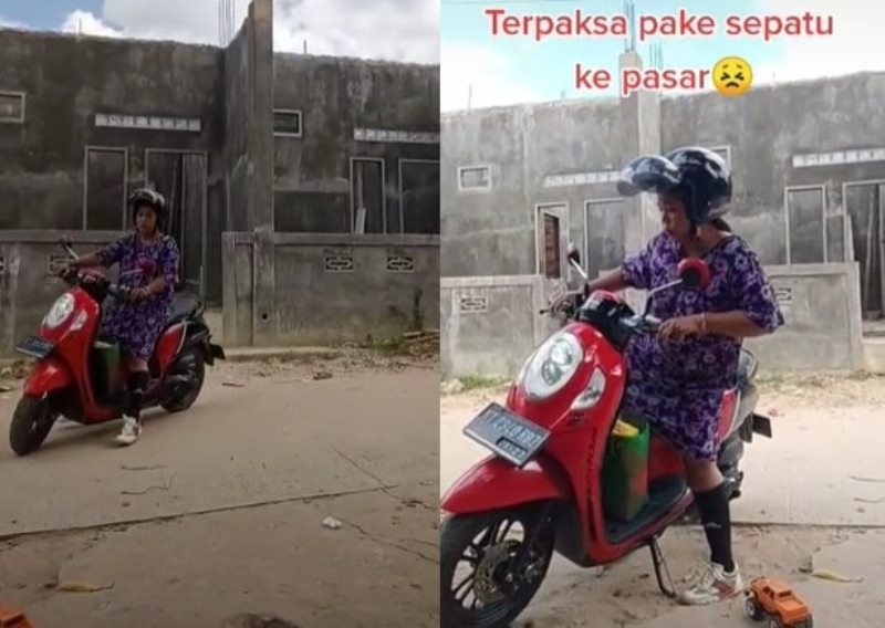 Setelah imbauan tersebut tersebar luas, seorang emak-emak pun memutuskan untuk memakai sepatu saat mengendarai sepeda motor.