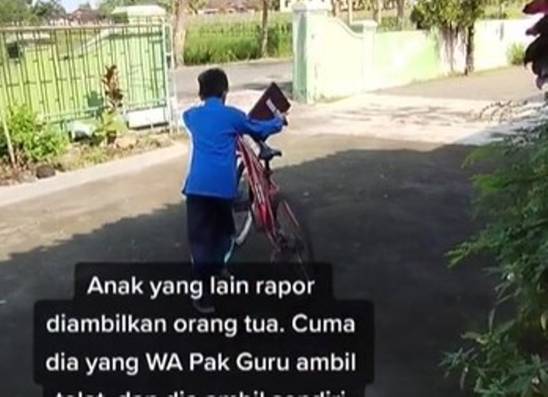 Video anak SD ambil rapor sendirian tanpa didampingi orang tuanya itu diunggah oleh sang guru melalui akun TikTok @bangbomss pada Minggu, 20 Juni 2022.