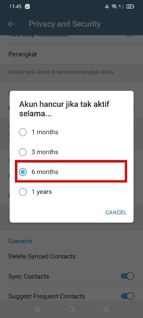 - Akun akan terhapus secara otomatis jika kamu tidak online atau membuka akun Telegram sesuai dengan rentan waktu yang telah kamu pilih.
