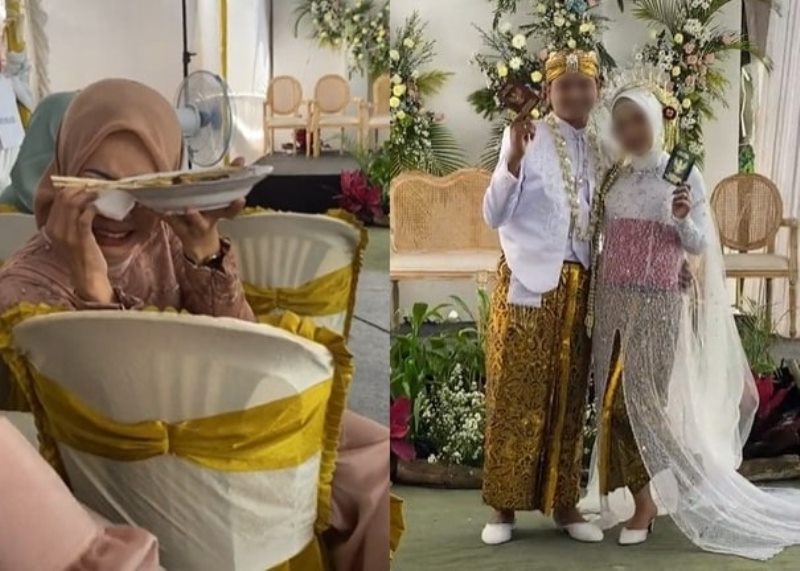 Ia berusaha menghapus air matanya dengan tisu, namun sampai akhir video ia masih menangis pilu di kursi yang dekat dengan pelaminan.