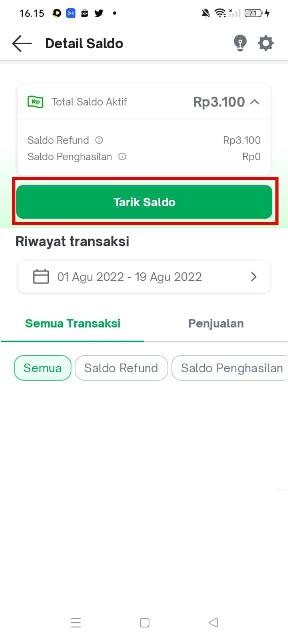 - Lalu klik Tarik Saldo.