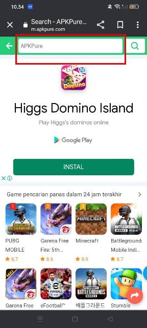 - Pertama kunjungi situs APK Pure di Google Chrome atau aplikasi browser yang kamu miliki. Kamu juga bisa download aplikasi APK Pure agar lebih mudah.