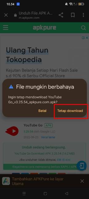 - Kamu juga akan mendapat pop-up peringatan, tekan opsi Tetap Download untuk mengkonfirmasi proses download.