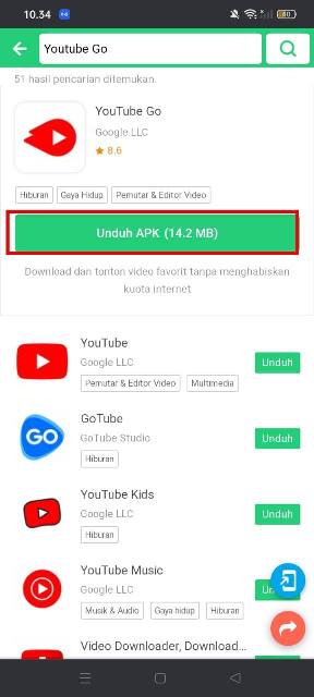 Cara Download YouTube Go di APK Pure