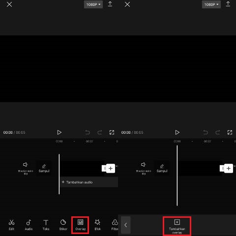 - Klik menu Overlay > klik Tambahkan overlay > silakan pilih dan tambahkan satu video terlebih dahulu.