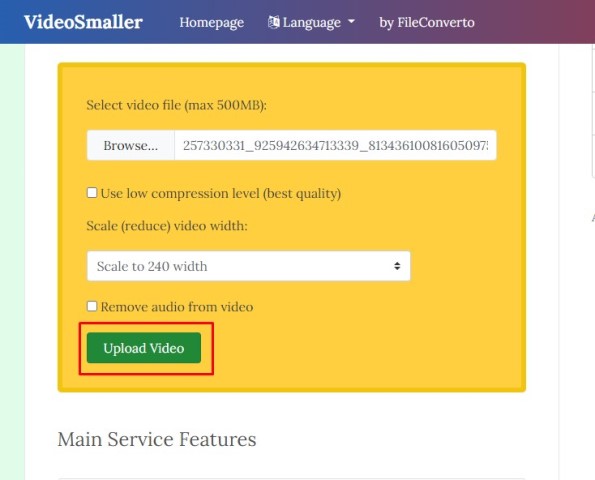 Pakai situs VideoSmaller