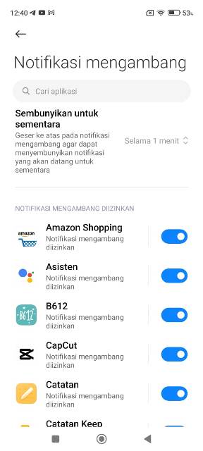 Seperti dijelaskan di awal, kami akan membahas tiga cara menonaktifkan notifikasi aplikasi di HP Xiaomi. Dan cara yang kedua adalah menonaktifkan notifikasi mengambang.