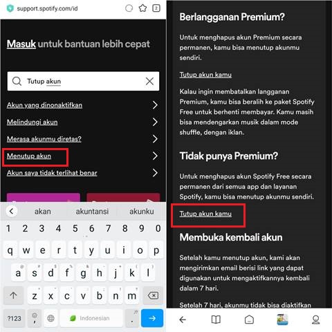 Setelah berada di menu Dukungan Spotify, silakan ketik Tutup akun di kolom pencarian > klik Menutup akun. Silakan klik Tutup akun kamu (jika tidak memiliki akun premium).