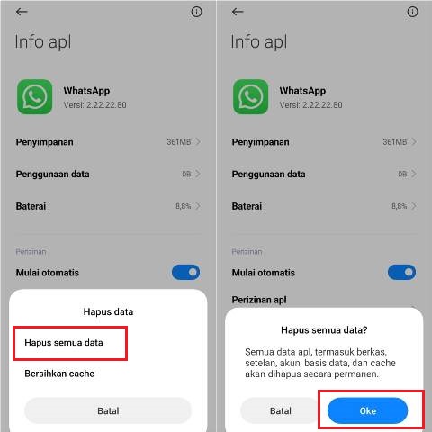 Logout akun WhatsApp dengan hapus data
