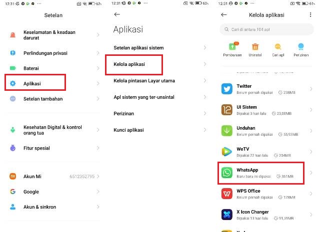 Uninstall aplikasi WhatsApp