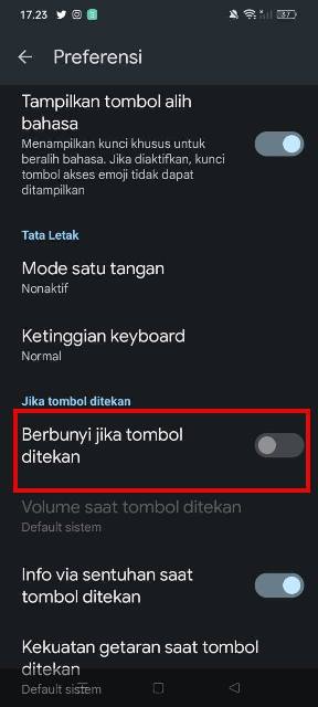 - Pilih matikan pada berbunyi jika tombol ditekan