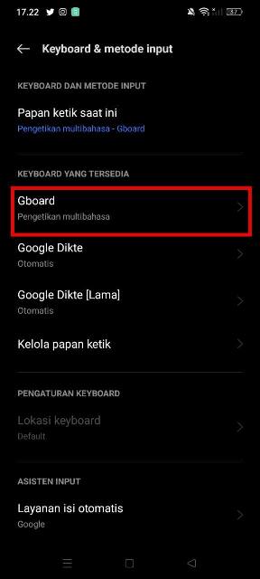 - Pilih Gboard lalu Preferens