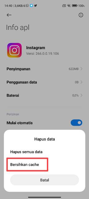 Setelah itu, klik Hapus data > Bersihkan cache. Lakukan cara tersebut pada semua aplikasi yang memiliki cache besar.
