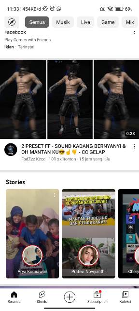 Langkah pertama yang harus dilakukan untuk download story YouTube adalah membuka aplikasi YouTube di HP. Di laman beranda, silakan scroll ke bawah sampai ke menu Stories.