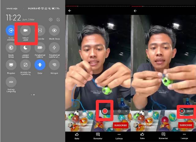 Misalnya di HP Xiaomi, silakan tarik status bar dan klik fitur Rekam layar. Klik tombol merah untuk memulai perekaman layar dan klik lagi tombolnya jika perekaman sudah selesai.