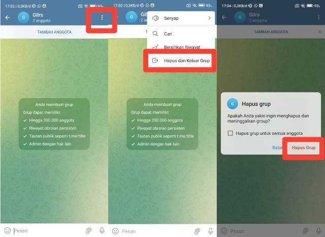 - Terakhir klik Hapus Grup jika sudah yakin keluar dari grup tersebut. Jika kamu adalah admin, maka sekaligus bisa juga menghapus grup untuk semua anggota.