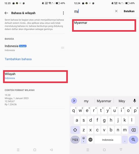 - Tap Wilayah dan pilih Myanmar.