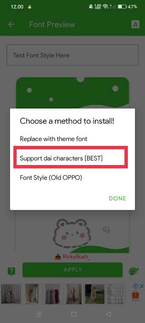 - Kemudian, pilih opsi Support Dai Character [Best] dan Install.