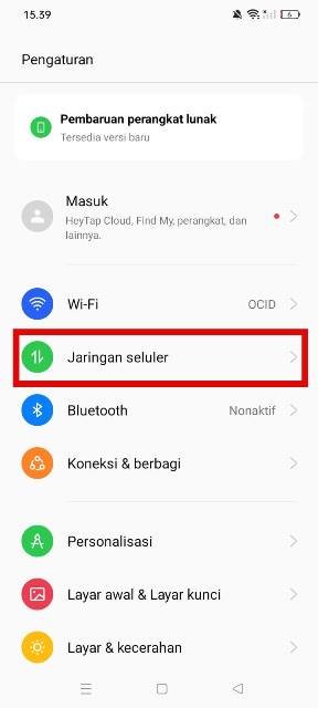 - Selanjutnya, pilih menu Jaringan Seluler.
