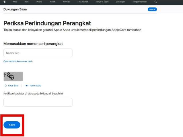 - Lalu masukan serial number produk Apple yang kamu gunakan.