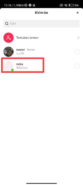 Metode terakhir adalah dengan membagikan video TikTok. Sama seperti metode sebelumnya, akun TikTok yang sedang aktif akan ada tanda hijau di foto profilnya.