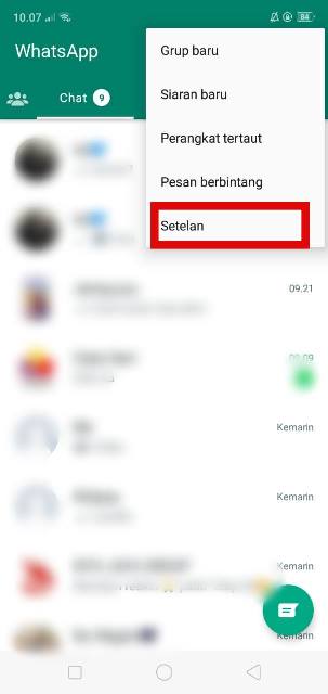 - Selanjutnya klik tiga titik vertikal yang ada di pojok kanan atas dan pilih menu Setelan atau Pengaturan.