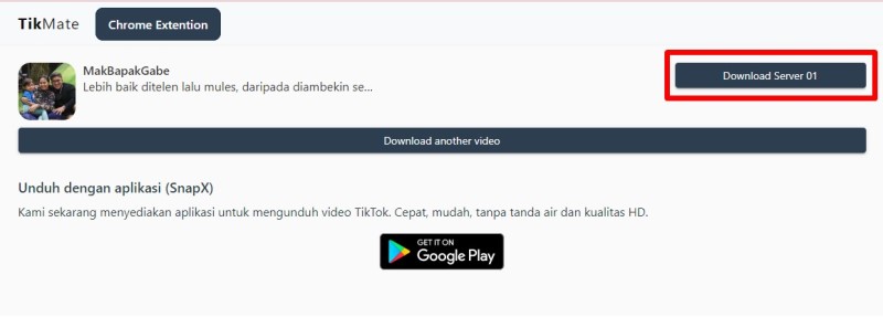- Terakhir, klik Download Server 01 dan proses download akan dimulai.