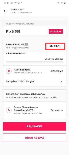 Misalnya karena paket yang diaktifkan kurang sesuai dengan kebutuhan, atau untuk mencegah paket diperpanjang otomatis sehingga perlu dinonaktifkan terlebih dahulu.