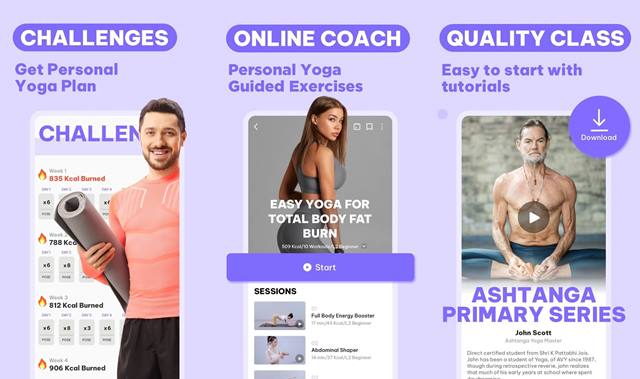 Aplikasi yoga ini cocok untuk berbagai bentuk rutinitas yoga seperti hatha yoga, pranayama, yoga vinyasa, yoga yin, yoga asana, yoga ashtanga, yoga inti, yoga kekuatan, yoga iyengar, dan yoga baba ramdev.