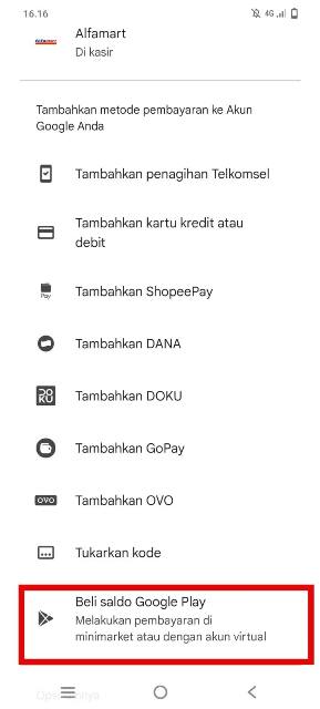 - Nantinya saldo Google Play akan muncul di daftar metode pembayaran yang tersedia.