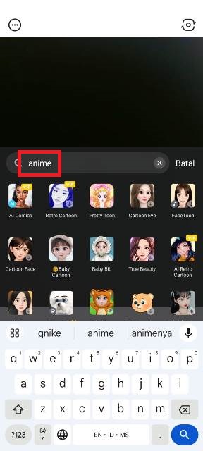 Misalnya, efek ‘anime’, maka akan langsung tampil berbagai pilihan efek sesuai kategori yang kalian cari.