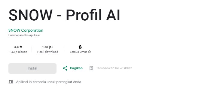 Langkah pertama yang harus dilakukan tentunya mendownload aplikasi Snow terlebih dahulu melalui Google Play Store.