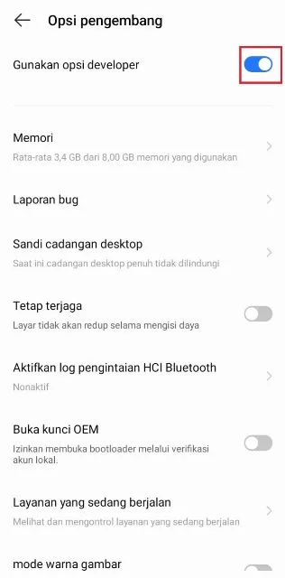 - Apabila ingin menonaktifkan Opsi Pengembang, tinggal klik tombol slider pada menu Gunakan Opsi Developer.