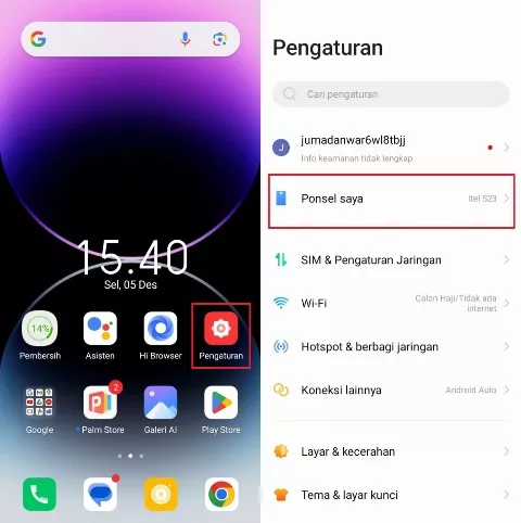 - Buka Pengaturan di HP Itel > Pilih Ponsel Saya.