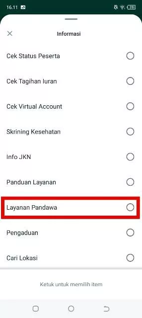 - Klik Informasi dan pilih “Layanan Pandawa”.