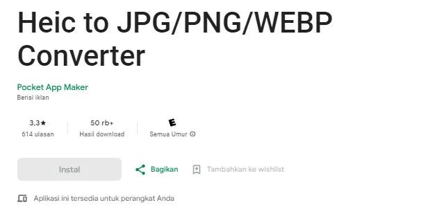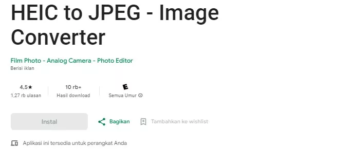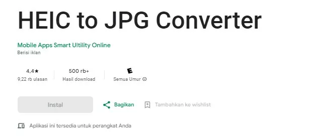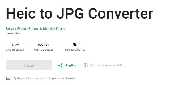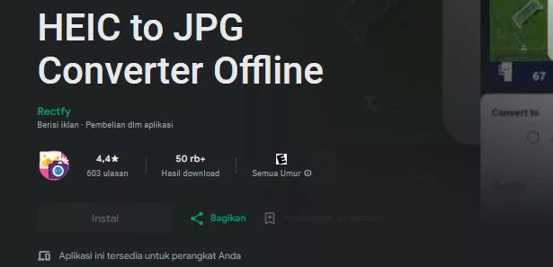 Jika beberapa aplikasi sebelumnya masih belum ada yang cocok, kalian bisa mencoba aplikasi yang satu ini, yakni HEIC to JPG Converter Offline.