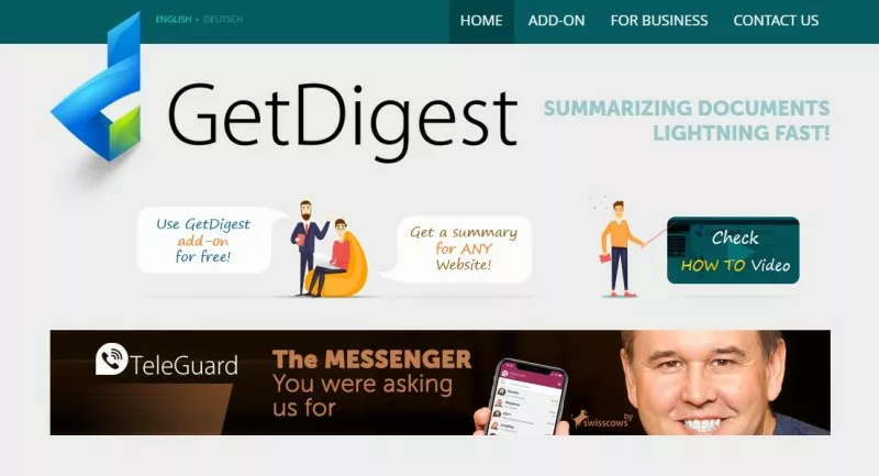 Dengan Getdigest, kalian bisa memilih bahasa ringkasan yang diinginkan, lalu simpan hasil ringkasan dalam bentuk file .txt/.pdf dan memungkinkan kita untuk mengakses riwayat ringkasan yang tersimpan di situs.