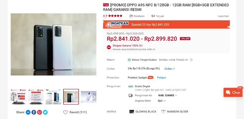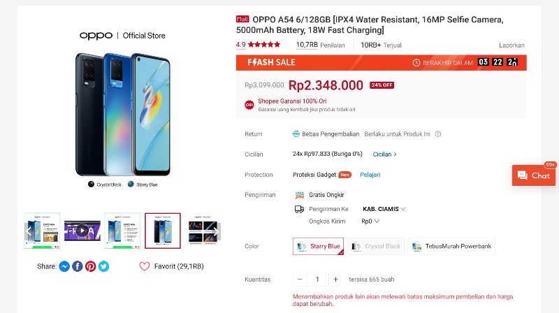 HP Oppo harga 2 jutaan rekomendasi Rancah Post yang berikutnya adalah Oppo A54. HP satu ini dijual di berbagai marketplace dengan banderol Rp 2.349.000.