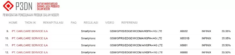 Di situs TKDN, keempat ponsel tersebut tertulis sama-sama memiliki dukungan jaringan 4G LTE. Infinix X6532 dan X6531B memperoleh nilai TKDN 35.05%, sedangkan X6881 dan X6880 punya nilai TKDN 35.50%.