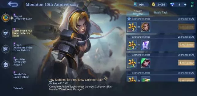 Menariknya lagi, Moonton untuk pertama kalinya membagikan skin collector secara gratis. Hal ini dilakukan sebagai bentuk perayaan ulang tahun Moonton yang ke-10.